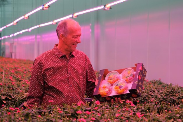 Tholen - Met de feestdagen in aantocht is het ook feest in de kas van Van Vugt Kruiden. Gele, paarse en witte viooltjes staan erbij alsof het voorjaar al is losgebarsten. En dat is precies het doel van Piet van Vugt. "Met het installeren van de juiste ledlampen kunnen we nu jaarrond een hoge kwaliteit eetbare bloemen leveren aan onze klanten."