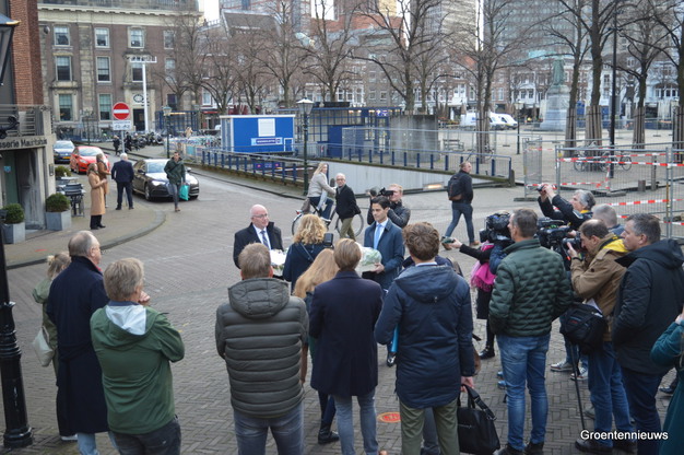 Tomatentelers Jack Groenewegen en Richard Hartensveld en siertelers Bert van Ruijven en René Hendriks waren bij de overhandiging van de brandbrief aanwezig. Zij stonden net als voorzitter Adri Bom-Lemstra en energiespecialist Alexander Formsma van Glastuinbouw Nederland de landelijke pers te woord.