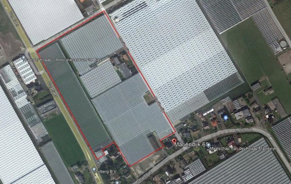 De glasopstanden binnen het rode kader zijn nu dus gesloopt. Ook het huis gelegen middenin (Mariëndijk 65b) is gesloopt.