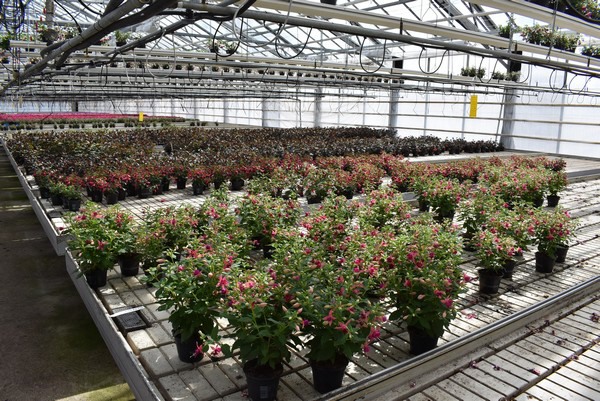 Ansari levert geen snijbloemen, enkel potplanten. De top 5 zijn volgens Anselmi geranium (ruim 600.000 exemplaren per jaar), potchrysant, begonia, poinsettia en tuinchrysant. Het bedrijf voorziet dus in bloemen voor zowel binnen als buiten. Van begonia’s en potchrysanten voor binnen in huis is er 10 maanden per jaar product beschikbaar, van petunia’s en geraniums loopt het seizoen momenteel op z’n einde en in augustus-september zullen er ongeveer 250.000 Mums de kas uitgaan. “Mensen willen af en toe wel eens iets nieuws zien, maar uiteindelijk is de keuze van de consument de afgelopen jaren niet wezenlijk veranderd. Wij zijn anderzijds wel steeds geïnteresseerd in nieuwe rassen, maar dan vooral uit teeltoverwegingen. Kunnen we het groeiproces van een bloem van 10 naar 8 weken inkorten, dan scheelt dat een slok op een borrel wat verwarmingskosten betreft.”
