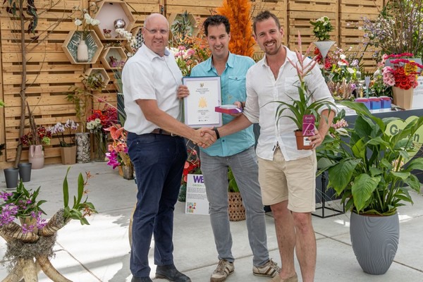 Juryvoorzitter Aad van der Knaap en Albert Haasnoot van de Floriade adviesraad Bloemen & Planten, reikten op 16 juni de prijzen uit. De drie best beoordeelde inzendingen per productgroep ontvingen een Floriade Award in de kleuren goud, zilver of brons en een hierbij behorend certificaat.