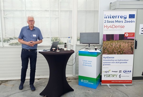 Martijn Blind van Vertify deelde bevindingen van het internationale onderzoeksproject naar teelt op water Hy4Dense. Specifiek wordt gekeken naar de mogelijkheden jonge groenteplanten in (nog) grotere dichtheid op te kweken. Meer info vindt u hier.