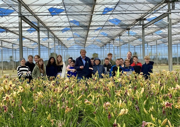 Met deze excursie komt de teller boven de 500 basisschoolkinderen die een bezoek brachten aan een kweker in de Bollenstreek. Van vaste planten tot hyacinten, van hosta’s tot geraniums en van tulpen tot zomerbloemen.