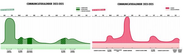 Een overzicht van de belangrijkste campagnes, met links planten en rechts bloemen. Klik hier voor de afbeelding in het groot.