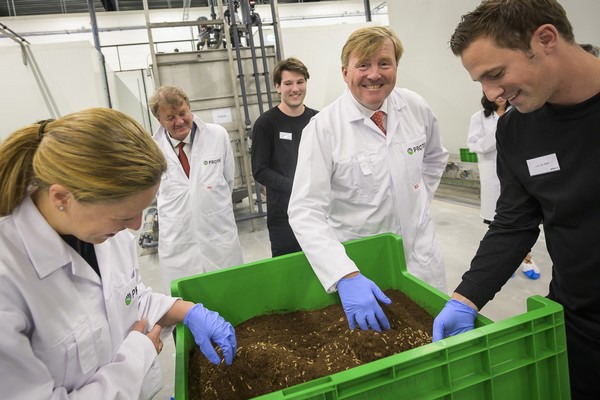 Koning Willem-Alexander bij de officiële opening van het pand van Protix in Bergen op Zoom in 2019. Foto Protix
