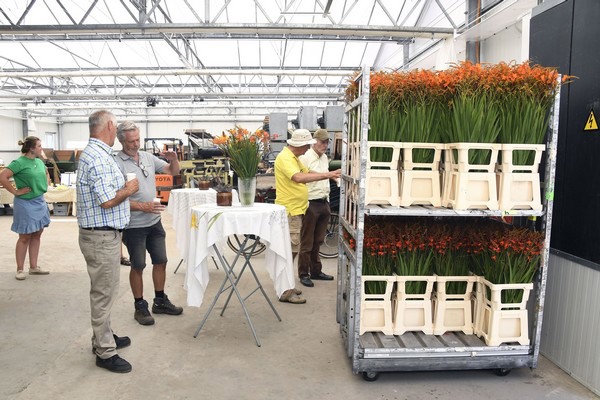 Het was zaterdag 13 augustus jl. al vroeg druk met fietsers langs de Prinsenweg, Frank van Borselenlaan en Teylingerlaan. De wegen waren versierd met vlaggen en potten gladiolen en de zes deelnemende bedrijven hadden hun best gedaan zo goed mogelijk voor de dag te komen. De een met een bedrijfsfilm of een fotoserie, de ander met een workshop en overal stonden uiteraard planten en bloemen en machines in beeld.
