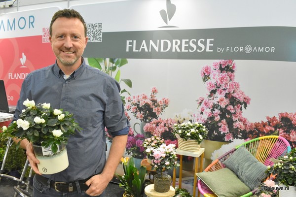 Kris Verhaegen, inkoper en salesman van FlorAmor, stond met de producten in de nieuwe P&Pure potten op de beurs.