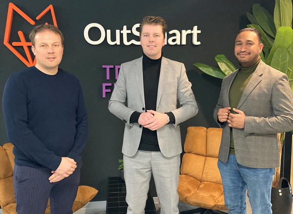 Vlnr: Steven Rigter (CEO OutSmart), Hans de Wit (DNA Services) en Dennis Usmany (Business Partner Manager OutSmart)
