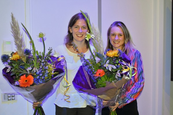 Liesanne Wieleman, oprichter en CEO, en Jildou de Jong, oprichter en CTO, van Thermeleon na de presentatie van Jildou