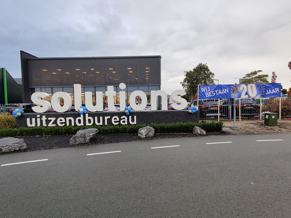 Uitzendbureau Solutions is sinds 2002 actief in het bemiddelen van kwalitatief personeel in diverse branches. "Al 20 jaar blijven we processen binnen ons bedrijf ontwikkelen. Het is dankzij onze medewerkers en partners dat we blijven groeien. We willen iedereen bedanken voor de samenwerking en daarmee het succes van onze organisatie. Daarom zal deze week in het teken staan van ons 20-jarig bestaan met festiviteiten voor de oprichter, het personeel en onze zakenrelaties", meldt het uitzendbureau.