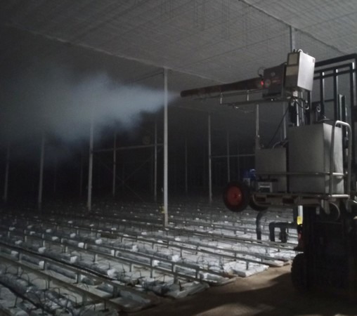 's Nachts door M-Force uitgevoerde bestrijding/ontsmetten d.m.v. foggen