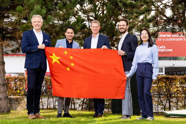 Het team China van Royal Brinkman: v.l.n.r. Leo Lievaart, Vincent van der Wilk, Jan Schuttrups, Maikel Dekker en Beijia Zhang