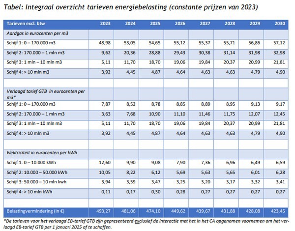 Klik hier voor de memorie van toelichting, en hier voor de tarieven energiebelasting.