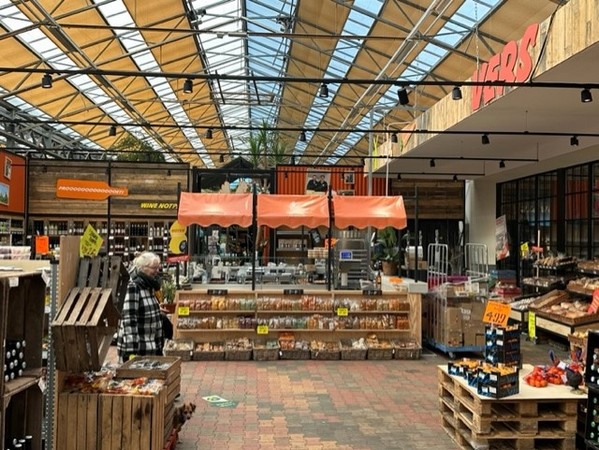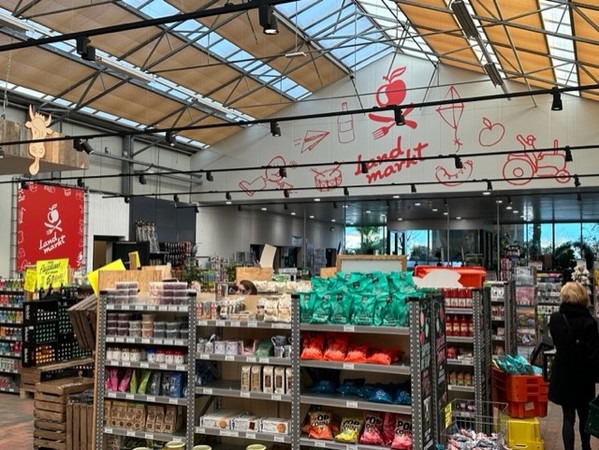 Groenrijk in Middelburg heeft een nieuwe geacclimatiseerde ruimte laten bouwen voor Landmarkt, het onderdeel van het tuincentra dat gaat over de verkoop van eten en drinken. De ruimte is bedoeld voor de gekoelde producten zoals kaas, fruit, en zuivel die bij Landmarkt worden verkocht. Want naast bloemen en planten heeft het tuincentrum nog twee speerpunten: dieren en 'food'.