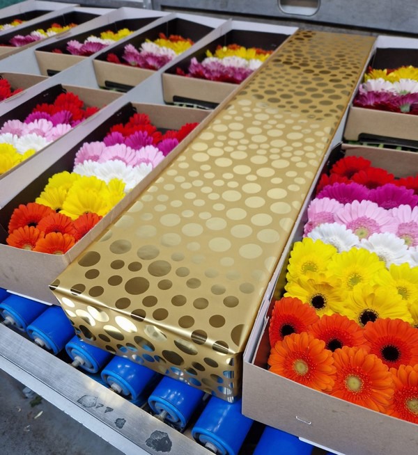 “Zeker omdat de sierteelt zich dit jaar in nogal ruig vaarwater bevindt, vonden wij dit een feestje waard”, vertelt de teler Dirk-Jan Oudijk. “Daarom hebben vanmorgen de vijftig miljoenste Gerbera, samen met een leuke (en lekkere) verrassing voor de kopende klant op transport gezet.”