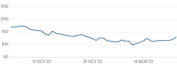 Door de weersverwachting dat het begin december kouder zal worden dan gemiddeld voor de tijd van het jaar, lijken de gasprijzen op de termijnmarkt weer licht te gaan stijgen, schrijft men bij Vattenfall verder in een marktupdate. Aandacht daarin is er ook voor de Europese gasprijsplafondplannen.