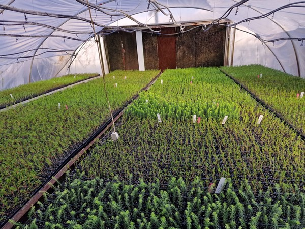 Een blik in de kas met Wasbloem Kangeroepoot pot trials. (Klik hier voor vergroting)