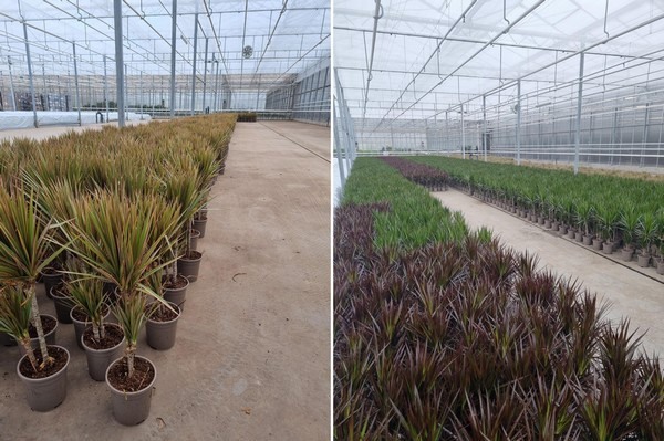 Tholen - De eerste Deremensis potmaat 17cm en Dracaena in potmaat 12 cm, 17 cm en 24 staan inmiddels op de tuin van Luiten Kwekerij in Pijnacker. Samen met de Yucca worden deze producten zo dadelijk gekweekt op 1,7 hectare.
