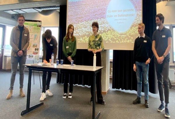 Woensdag 15 februari presenteerden acht studenten van de HAS uit Den Bosch hun casus ‘Een gezonde Duin- en Bollenstreek’. Wat houdt dit precies in, hoe komen we daar, welke offers moeten daar voor gebracht worden, waar liggen de kansen en hoe zit het met bereikbaarheid, biodiversiteit en toerisme? De studenten schetsten een scenario voor het jaar 2050 en 2100. Deze kijk naar de toekomst laat goed zien welke mogelijkheden er zijn in onze regio.