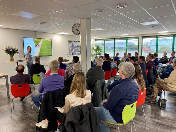 Rene Corsten van Delphy praatte de aanwezigen bij over de preventie en bestrijding van valse meeldauw. Een mooi inzicht om de plant ten eerste weerbaarder te maken en met wat hulpmiddelen een eventuele aantasting alsnog te beperken. Tot slot werd nog even stilgestaan bij de diverse gewasbeschermingsmiddelen en de juiste inzet daarvan tegen valse meeldauw.