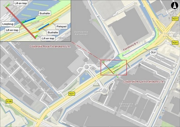 Daarnaast komt er een voetgangersbrug over de N231 ter hoogte van het terrein van Royal FloraHolland. Deze voetgangersbrug is inclusief 2 nieuwe haltes, trappen en liften waardoor een substantieel aantal busreizigers en voetgangers de N231 veilig kunnen oversteken. Door de aanleg van de 2 haltes voor Hoogwaardig Openbaar Vervoer (HOV) wordt de route voor OV-lijnen 357 en 358 met 6 minuten versnelt. Hier profiteren straks dagelijks ruim 2.000 reizigers van. Naast tijdswinst voor reizigers levert dit ook milieuwinst op.