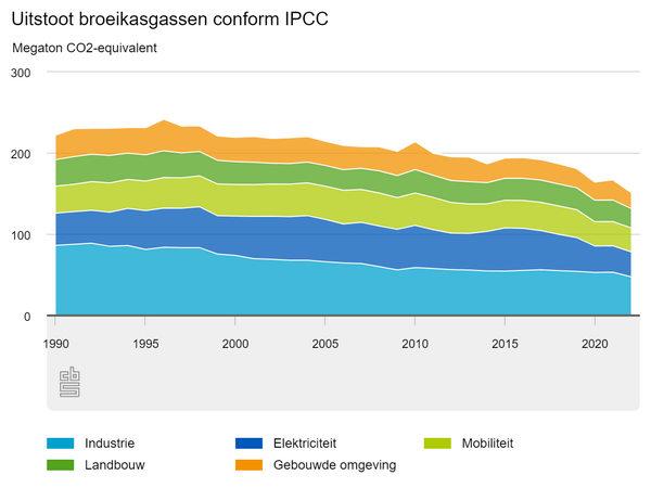 De uitstoot van broeikasgassen in Nederland was 9 procent lager in 2022 dan in 2021. Dat komt vooral doordat er minder aardgas is verbruikt door de industrie, gebouwde omgeving en landbouw. Dit blijkt uit een eerste raming van het CBS en het RIVM/Emissieregistratie over de uitstoot van broeikasgassen in 2022 volgens de IPCC-richtlijnen.