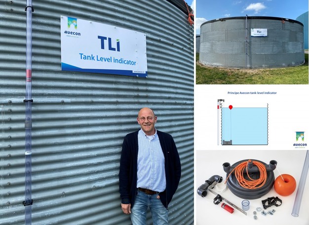 Enkele jaren geleden besloot hij hiervoor een oplossing te ontwikkelen en via zijn eigen bedrijf Avecon op de markt te brengen. Het principe van de Tank Level Indicator is gebaseerd op een drijver in de silo en een indicator aan de buitenzijde van de silo die met een stevig koord aan elkaar zijn verbonden. Met behulp van vier slimme koordgeleiders geeft de indicator de werkelijke inhoud van de silo duidelijk aan.