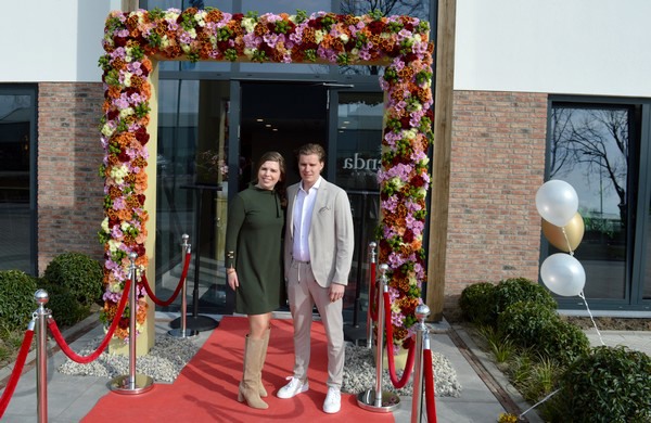 Tholen - De nieuwe kas van Henda Flowers in Zuilichem is afgelopen zaterdag officieel geopend. In aanwezigheid van familie en vrienden, en uiteraard ook van bouwpartners en toeleveranciers, knipten de drie kindjes van Henry en Hilde Satter een lint, waarop het gezelschap het bedrijf van binnen kon bewonderen.