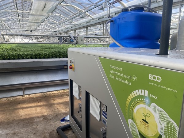 Door allerlei omstandigheden kan het zuurstofgehalte van irrigatiewater dermate veel dalen, dat het een gezonde plantengroei in de weg staat. Daarom heeft EOD Europe een nieuwe zuurstofgenerator ontwikkeld, de Nanoboost Oxygen Finebubble Generator, die zuurstof toevoegt en het niveau ervan in het irrigatiewater stabiliseert.
