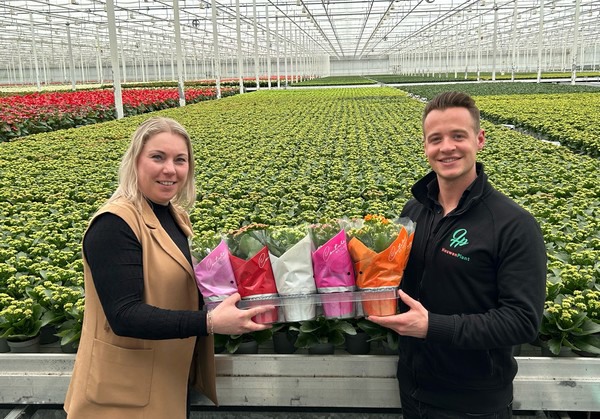 HouwenPlant is gisteren begonnen met de verkoop van Kalanchoë 12 cm. Zij telen de dubbelbloemige Calandiva rassen van Dümmen Orange en Perfecta Red van Lankhaar. Op de kwekerij van 3,5 ha aan de Veilingweg in De Lier worden op dit moment nog zowel Kalanchoës als potanthuriums geteeld. De Kalanchoës worden verkocht in de uitstraling van ‘Couture by Nature’. Het merendeel van het hoofdproduct van HouwenPlant, potanthuriums, worden ook in de gekleurde Couture hoezen verkocht. ‘Ik ben erg blij met de plantkwaliteit die onze collega Erkan teelt en heb er veel zin in om de nog kleine weekaantallen in onze herkenbare uitstraling te gaan verkopen’, aldus Rick van Deventer.