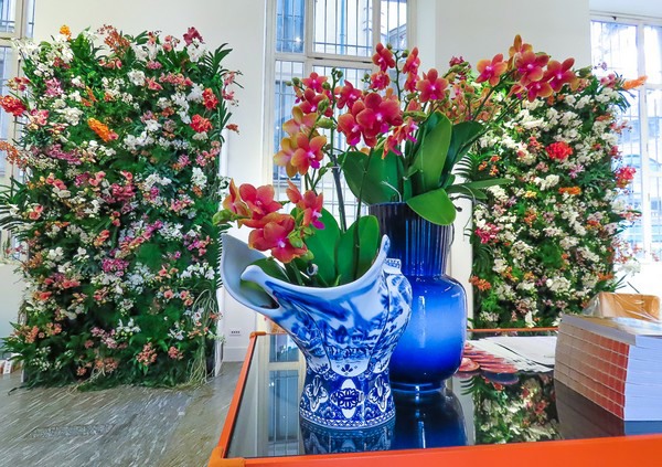 In het klassieke witte decor van het paleis trekken orchideeën (gearrangeerd door Sand en Spijker uit Delft) sterk de aandacht, en complimenteren de designstukken in de ruimte. Honderden orchideeën zijn verwerkt in maar liefst vier metershoge installaties met Elho bakjes en in arrangementen met klassieke Royal Delft porseleinen vazen. De presentatie van een rijk assortiment aan Phalaenopsis en exclusieve orchideeën geven het iconische Palazzo Giureconsulti kleur en leven.