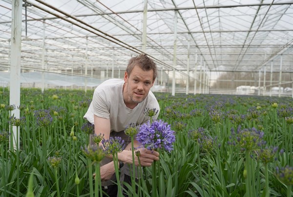 "Je komt eigenlijk op het verkeerde moment, want in maart is de productie min of meer op z’n laagst. Vanaf eind april verandert het hier in een blauw-witte zee van oogstrijpe stelen; dat is echt prachtig om te zien!" Danny van Eijk toont zich een uitstekende ambassadeur wanneer hij zijn bezoek voor gaat in de kas. Sinds 2007 runt hij samen met zijn zus Bianca het bedrijf Eyco Flowers dat gespecialiseerd is in Agapanthus – voor sommigen beter bekend als Afrikaanse lelie. "Wij telen Agapanthus als een nicheproduct dat vooral z’n weg vindt in het hogere segment. Voor ons is het belangrijk dat de bloem – die we onder de merknaam EYFORI via de veiling verkopen - voortdurend in de schijnwerpers staat."