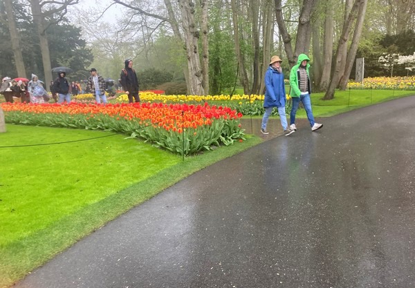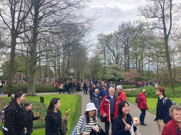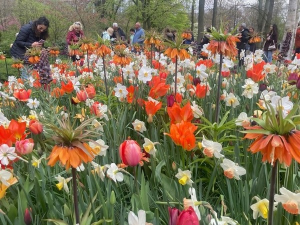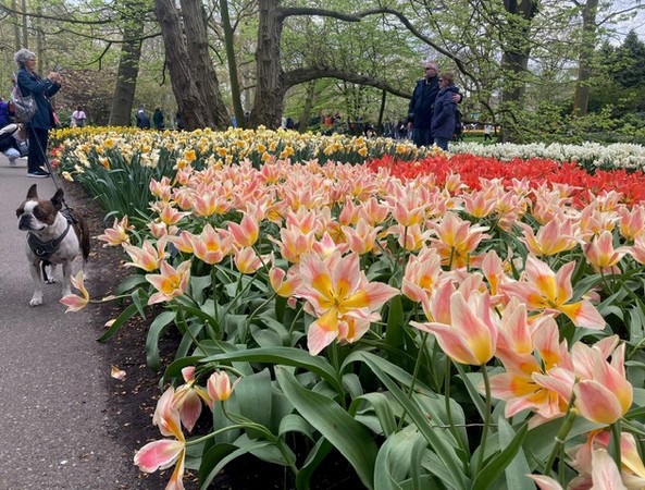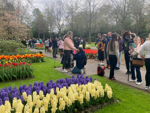 Ondanks het wisselvallige weer was het afgelopen weekend druk in de Keukenhof. Tickets voor zaterdag 22 en zondag 23 april waren zelfs uitverkocht. Ook wij namen een kijkje in het park waar we, buiten de 'goedemiddag' bij de ingang geen Nederlands woord hebben gehoord. Hieronder een impressie.