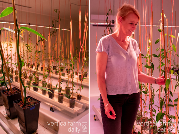 Vanille-orchideeën zijn hoge liaanplanten die tot 30 meter lang kunnen worden en zich om bomen of andere steunen heen vlechten. Bij Dansk Vanilje zorgt het gebruik van kunstbomen ervoor dat de liaan kan klimmen zoals hij normaal zou doen en het vocht dat zich op de boom heeft gecondenseerd kan aanzuigen. Dansk Vanilje heeft ook LED-topverlichting en tussenverlichtingsoplossingen geïnstalleerd om te zorgen voor een uniform lichtniveau in het hele bladerdek, hoewel orchideeën niet zo'n hoog lichtniveau nodig hebben als andere tuinbouwgewassen. Het bedrijf experimenteert met zowel rood-blauwe als breedspectrumverlichting.