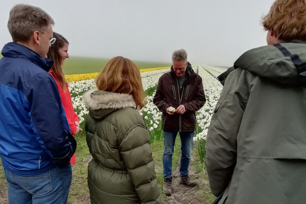 Ruim 30 geïnteresseerden hebben op vrijdag 28 april een bezoek gebracht aan biologische bloemenkwekerij Op Beemster klei én aan biologische bollenkwekerij Huiberts bloembollen. Daar deelden experts Julian Langelaan en John Huiberts hun ervaring met deze teeltwijze. De excursies waren georganiseerd door Bionext in het kader van het project kennisplatform voor de biologische sierteelt.