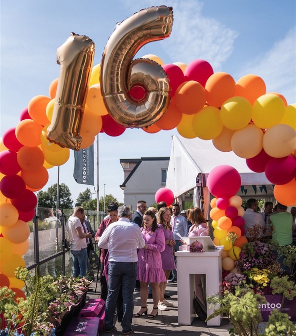 Afgelopen woensdag vierde Zentoo haar 16e verjaardag met het evenement Sweet 16. Het feest vond plaats in de met bloemen omgetoverde Torpedoloods in Hoek van Holland. Naast de ondernemers en medewerkers waren ook de leveranciers, klanten en andere relaties uitgenodigd voor een middag en avond vol plezier, culinaire verwennerij en entertainment.