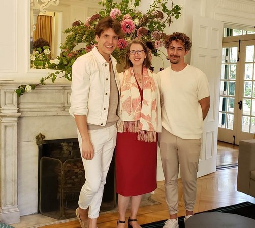 Dennis Kneepkens (l) en Mick Stubbe (r) met Denise Lutz, Landbouwraad in Japan (foto: Shigeki Kuribayashi)