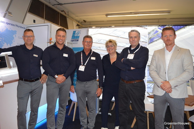 Kick Jansen, 2e van rechts, liep rechtstreeks vanuit de uitzending voor Chinese tv, met naar verluidt 150 miljoen kijkers, de teamfoto bij Luiten Greenhouses in. De beursorganisatie is, zo vernamen wij al, erg in zijn nopjes met ook alle internationale aandacht voor de beurs van niet-tuinbouwvakmedia.