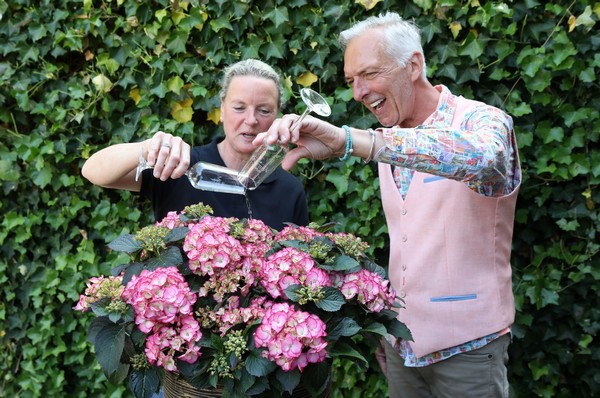 Erica Renkema en Martien hebben gisteren hun eigen tuinhortensia gedoopt. De nieuwe tuinplant draagt vanaf heden de naam Hydrangea macrophylla ‘Code Rosé’ en is vernoemd naar het gelijknamige Boutique Pension van de familie Meiland in Noordwijk. Martien: “Ik ben gek op hortensia omdat deze zo veel en zo lang prachtige, grote bloemen geeft.” Erica: “Ik kan niet wachten om ze in de tuin van het pension te planten zodat de gasten ervan kunnen genieten.” De nieuwe, sterke tuinplant bloeit tijdens de zomermaanden en heeft een felroze bloemkleur met een unieke donkerroze rand. Het donkergroene blad zorgt voor een verrassend contrast. Code Rosé komt elke zomer opnieuw tot bloei en eenmaal volgroeid is deze tuinhortensia zo’n 120 cm hoog.
