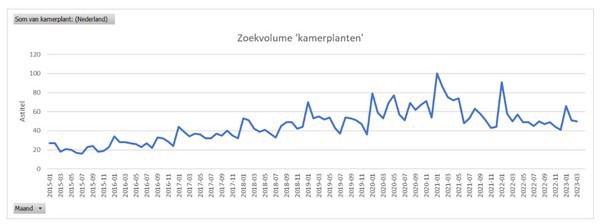 Zoekvolume ‘kamerplanten’ sinds 1 januari 2015 t/m maart 2023