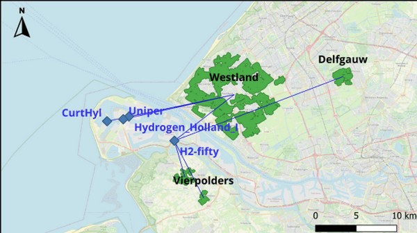 Het onderzoek bestond uit vier verschillende scenario’s: technologisch, ruimtelijk, milieutechnisch en economisch. In het technologische scenario werden alle bestaande en geplande elektrolysers en datacenters beoordeeld om de totale mogelijke restwarmtevoorziening te bepalen, inclusief hun respectievelijke capaciteit. In het ruimtelijke scenario werden de locaties van elektrolysers en datacenters in combinatie met nabijgelegen kassen geëvalueerd om optimale koppels van vraag en aanbod te creëren, waarbij de afstand werd geminimaliseerd en de warmtevraag werd gemaximaliseerd.