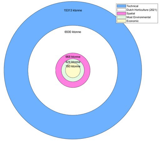 De resultaten van het onderzoek tonen aan dat de teruggewonnen restwarmte van elektrolysers en datacenters, die aan kassen wordt geleverd, aanzienlijk kan bijdragen aan de CO₂-vermindering in de Nederlandse tuinbouwsector. In het technologische scenario kan dit potentieel leiden tot een vermindering van 15.313 kiloton CO₂, wat overeenkomt met 235% van de totale CO₂-uitstoot in de Nederlandse tuinbouw. Rekening houdend met het ruimtelijke scenario, milieutechnische scenario en economische scenario kan reëel circa tot 199-160 kiloton CO₂ bespaard worden.