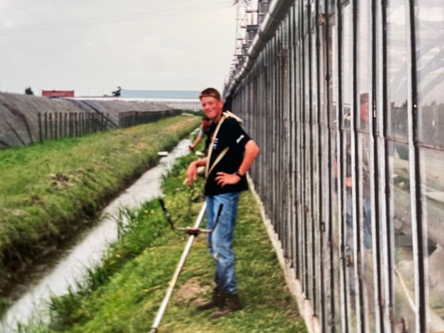 Een plaatje uit de oude doos: Maarten als broekie aan het werk rond de kas