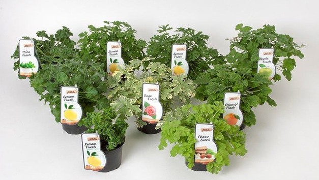Peter Boekestijn van Pedro Plant is al jaren bekend als kweker van Pelargoniums met frisse geuren. “Het product roept direct emotie op als mensen het zien óf ruiken”, weet Peter. “De afgelopen jaren heb ik een assortiment met verschillende geuren weten op te bouwen. Een van de bekendste is de Lemon Fresh Citrosa Mosquito Fighter, maar ook de geuren Apple, Choco, Cola, Orange, Mint en Rose nemen in populariteit toe. Deze geraniums hebben essentiële oliën in hun bladeren waarmee ze hun parfum verspreiden, bepaalde soorten kunnen hiermee zelfs insecten verjagen.”