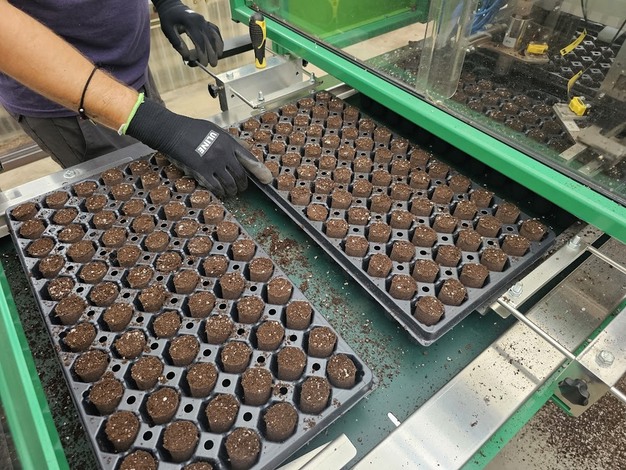 "We gebruiken Ellepots al meer dan 10 jaar", zegt James. "We zijn begonnen met één Ellepot-machine zonder automatisering. We gebruiken nu twee speciale machines die zijn uitgerust met automatisering voor het vullen van trays en met zaai-, poot- en irrigatie-units."