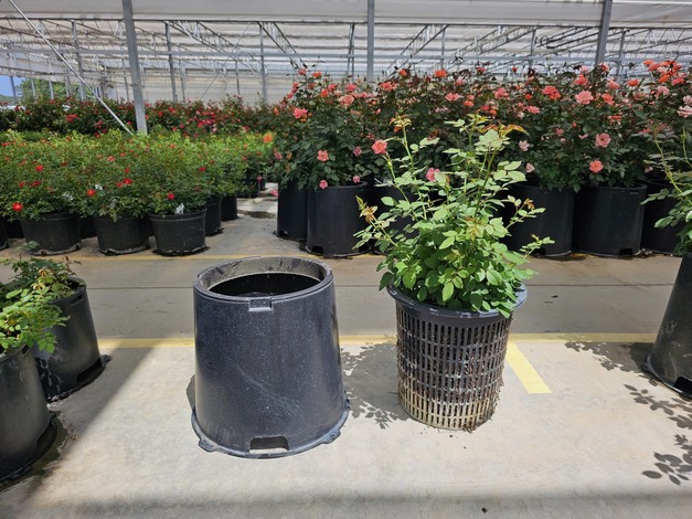 "Dit zijn twee grote plantprogramma's waarvoor we onze eigen stekken oogsten", zegt James. "Pioneer Pots zijn ideaal voor de teelt van vaste planten vanwege hun pot-in-pot configuratie. De buitenpot houdt een binnenpot van gaas van de grond, zodat de potten op elk type ondergrond kunnen worden geplaatst, inclusief stof, grind of beton. De binnenpot staat niet rechtstreeks in plassen of stilstaand water. De binnenpot is gaas rond de bodem en zijkanten, dus er is wortelsnoei rond de hele kluit."