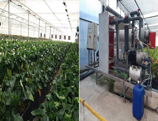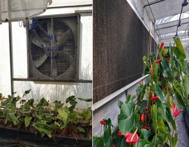 De anthuriums worden in speciale goten gekweekt op substraten als Oasis en Perlite. Daarnaast is er een fertigatiekamer met 2 draaiende units, een DGT Volmatic AMI 1000 en een Netafim Netaflex 4G die beide ongeveer 42 Electrovalves (sectoren) in de kassen aansturen voor druppelirrigatie, ook van Netafim.