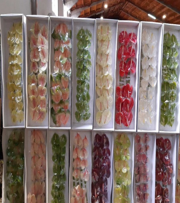 Boxen met anthurium te koop op de thuismarkt