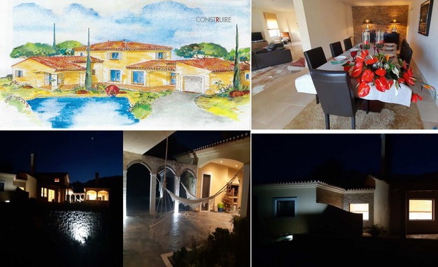 De villa heeft een typisch mediterrane architectuur (zie tekening en foto's hierboven) met twee complete suites, twee gastenkamers, een grote woonkamer, een eetkamer, 3 toiletten, een fitnessruimte, een grote keuken en een buitenkeuken met grill. Het totale bouwoppervlak is 440 m2 en heeft een veranda van 200m2. Het huis is 14 jaar oud en van topkwaliteit, gebouwd met natuursteen. De tuin meet 3.200 m2 en heeft een zwembad.