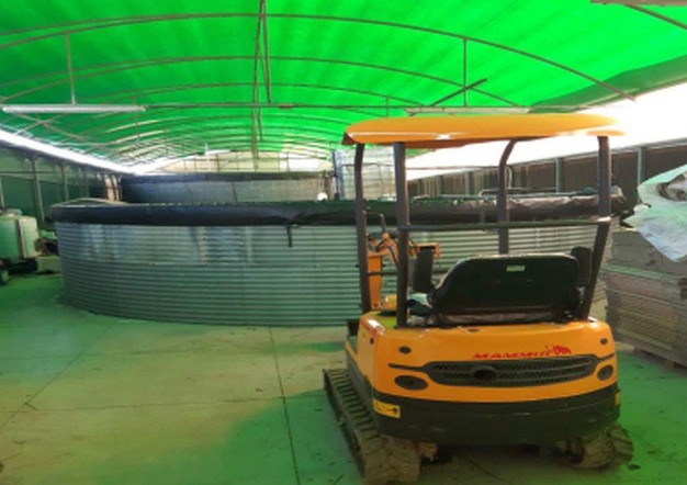Er is een gebouw bij de hoofdingang met drie kantoren, een kantine voor het personeel en toiletten voor 30 werknemers op de begane grond. Er zijn ook een koelkamer en een fertigatieruimte. Het gebouw heeft twee verdiepingen, de eerste verdieping is waar de omvormers van de zonnepanelen draaien en waar ook gereedschappen liggen opgeslagen.